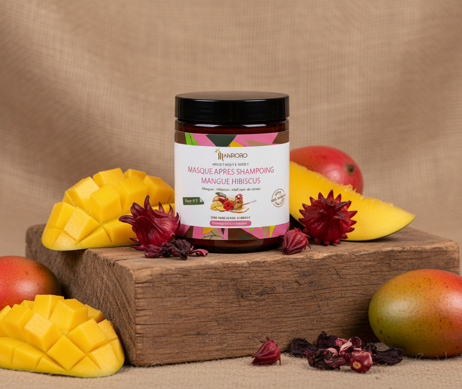 Un soin 100% naturel, riche en mangue, hibiscus et miel pour des cheveux nourris, brillants et pleins de vitalité. Hydrate, adoucit et fortifie.